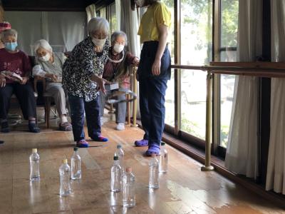 今日の輪投げは、ペットボトルが的ですぴかぴか (新しい)
