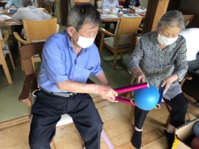 棒で挟んで隣の人に渡していくのですが