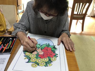 幸望庵での初めての塗り絵