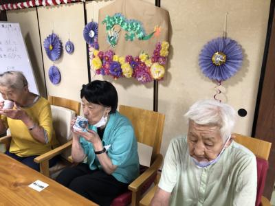 体操の後はお茶を飲みながら休憩