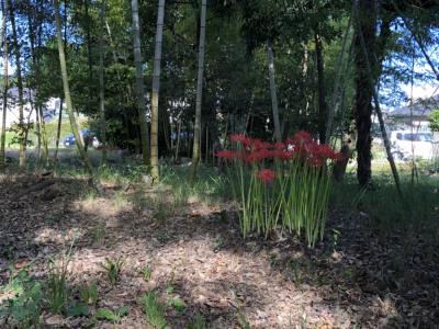 来庵され、玄関先で椅子に腰掛け乍ら竹林の中に咲くヒガンバナに見惚れる母達・・・