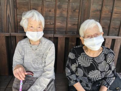 縁側では、熱心に機能訓練に取り組まれる母達の姿・・・