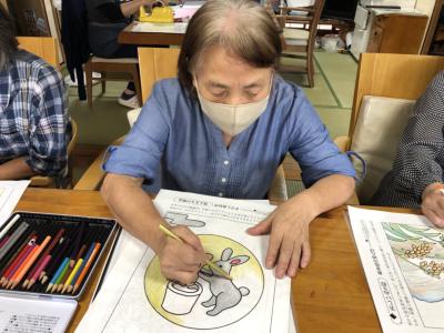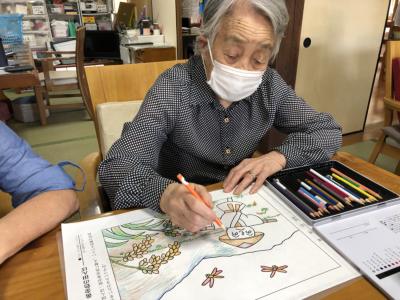 優しく色鉛筆を滑らせ、綺麗に塗り上げて行く母です