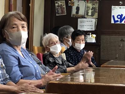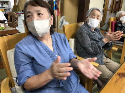 リズムに乘りながら笑顔いっぱい仲間の歌う歌を楽しまれています