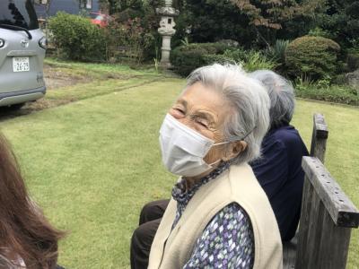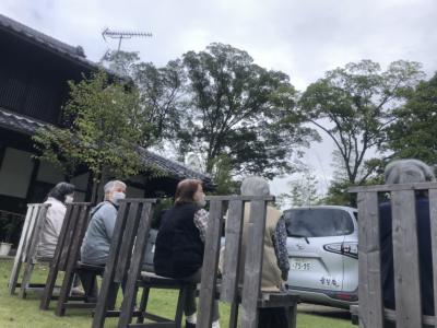 庵にご到着後、手洗いの席が空くまで外のベンチで一休み