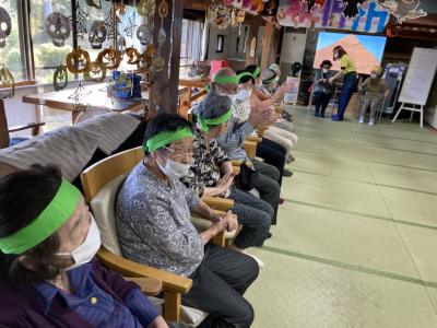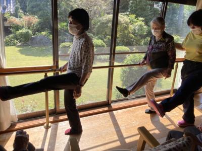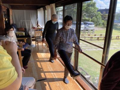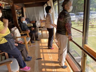 皆様は準備体操を兼ねて、機能訓練を頑張っています