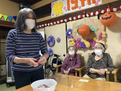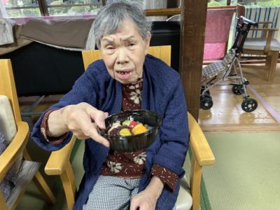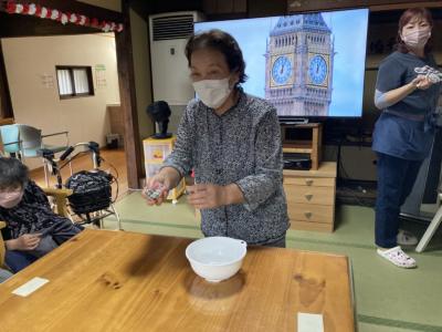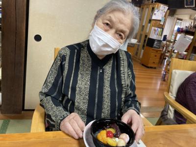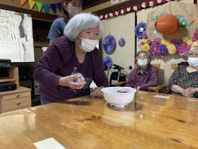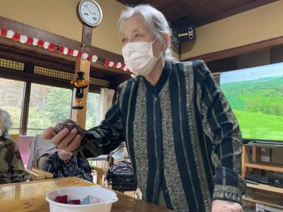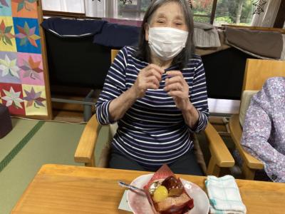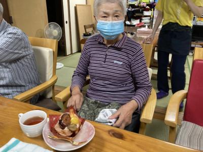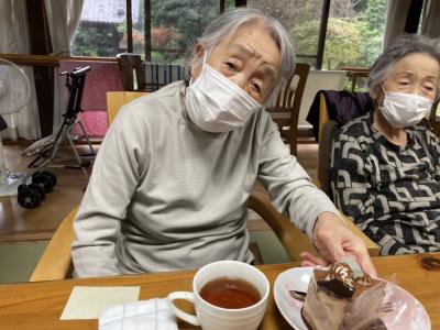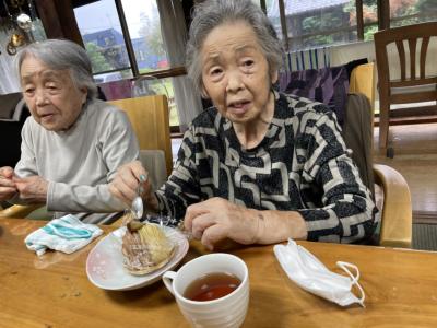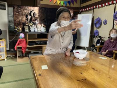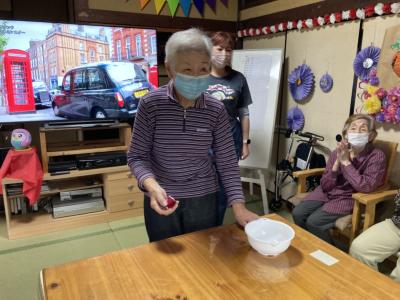 お手玉ゲームで楽しんだ後は、美味しいスイーツを頂き
