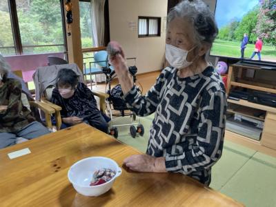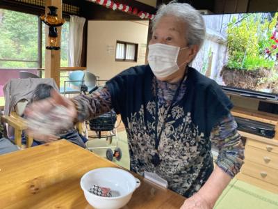 午後はお手玉を投げて得点に入れていくゲームをしますわーい (嬉しい顔)
