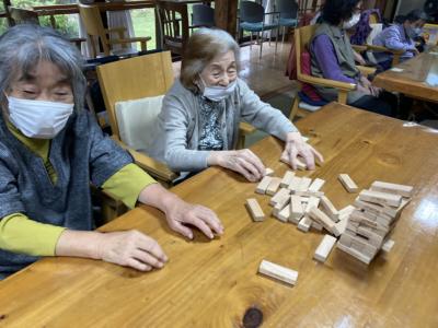 ドキドキしながら、抜くブロックを選んでいきます