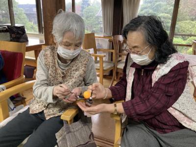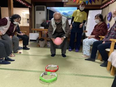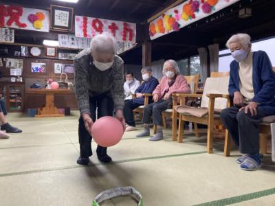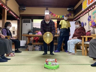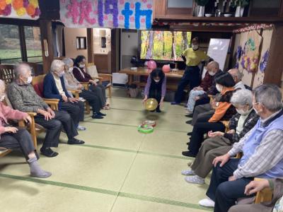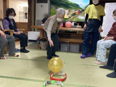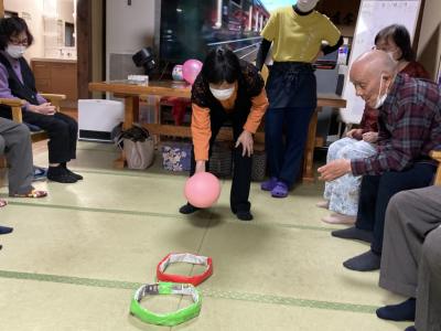 次は風船を5回手元で弾ませてから、隣の方に回すゲームです