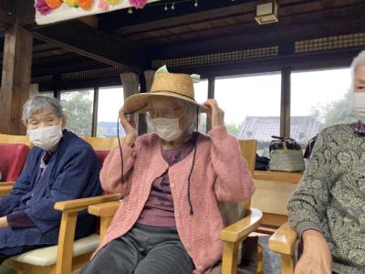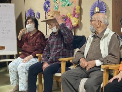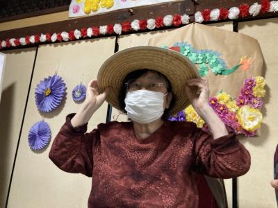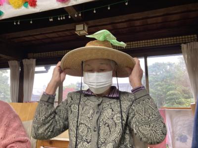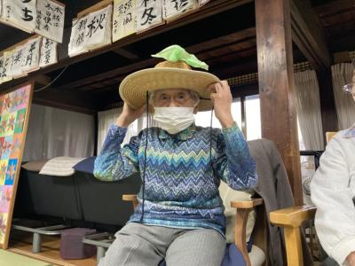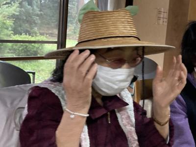 次のゲームは帽子を下に置き、かぶって・ぬいで隣の人に