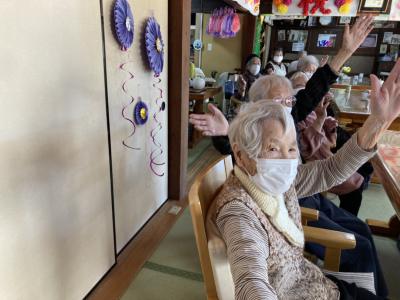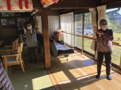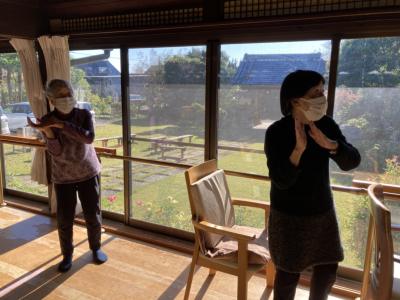 その後は歌謡曲に合わせて体操をしていますよ