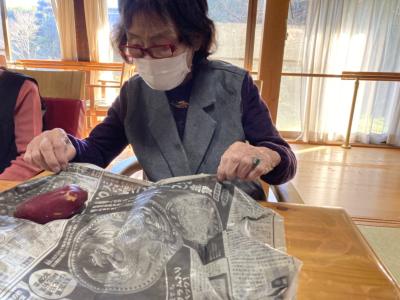 午後のレクリエーションは焼き芋になります🍠