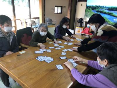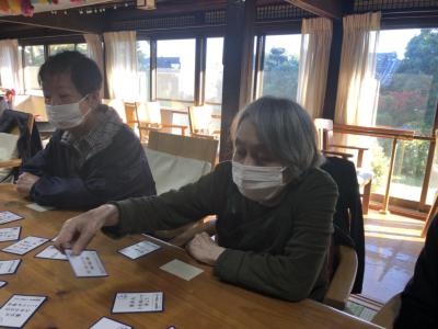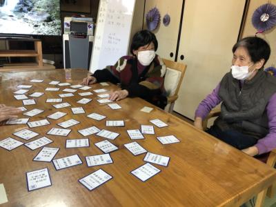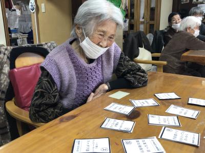 イントロが流れてきたら 曲名が書かれた札を探し出します
