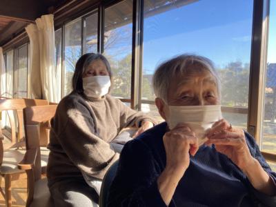 幸望庵では日向ぼっこしながら皆さん景色を楽しまれています
