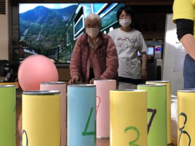 倒れたピンの合計得点を競っていきますよ