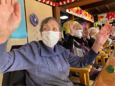 こちらの母達は縁側で、歌いながら腕を動かしていますぴかぴか (新しい)