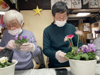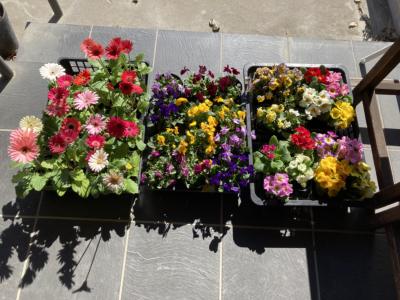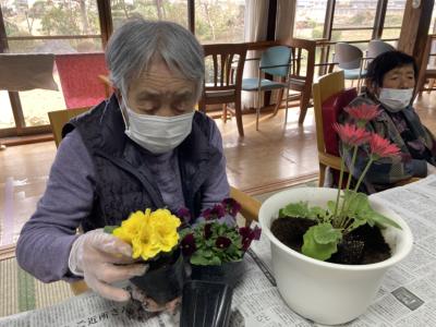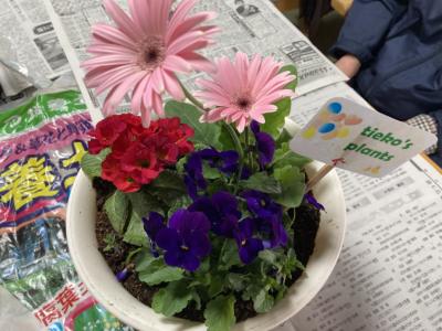 色とりどりのお花を取り合わせて、素敵な寄せ植えを作って