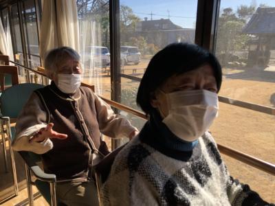 母達は、窓からの景色と仲間との会話を楽しみながら笑顔いっぱいです