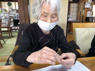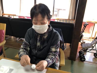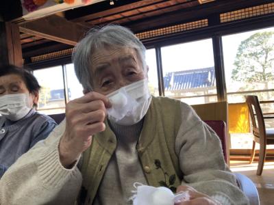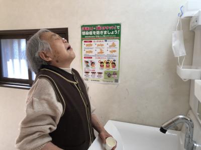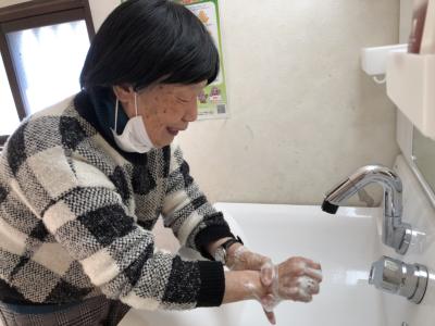 手洗いの後の手指消毒も、利用者さん自ら手を出して下さいます