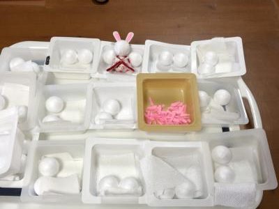 球体のボンドが乾くまでの間 うさぎさんの耳部分の制作をしま~す
