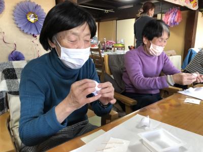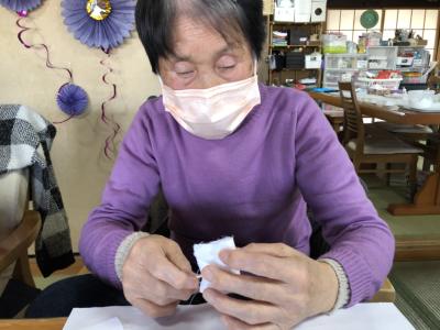 『美人さんにしなきゃね』 笑顔で会話しながら制作を進めて行く母達です