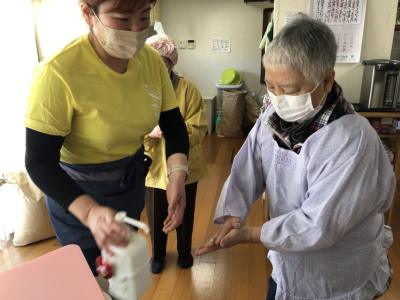身支度を整え、手洗い・手指消毒を済ませる母達!