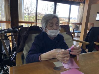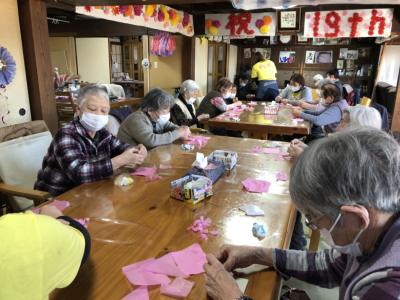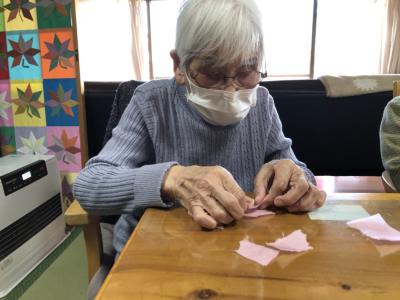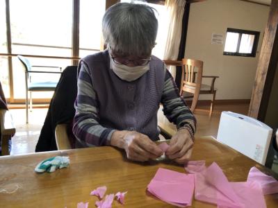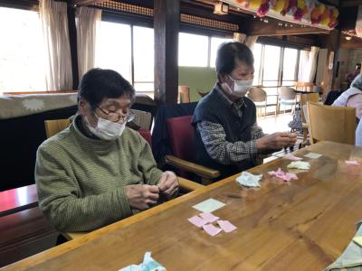 手作業を楽しみながら仲間との会話も楽しみ、手指の巧緻性も期待大の