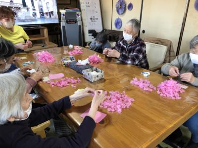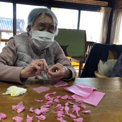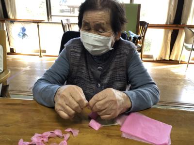 今回は桜色のお花紙を沢山千切ります🌸🌸