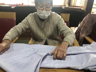 洗濯物を畳む動作には、腕の上げ下げや指のつまむ、持つ