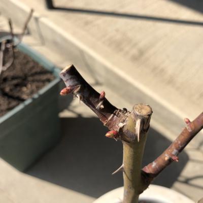 剪定した薔薇からは、少しずつ蕾が膨らんでいます