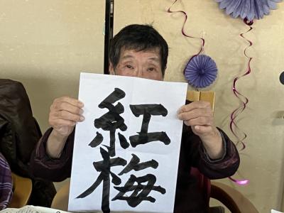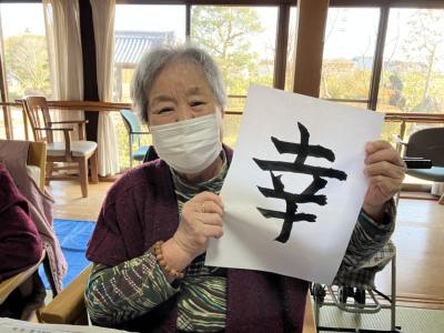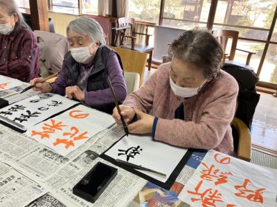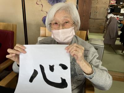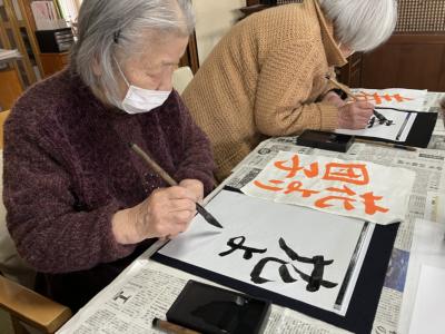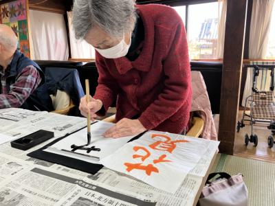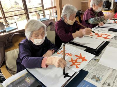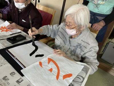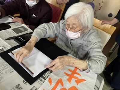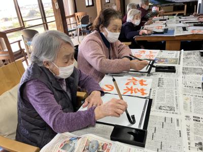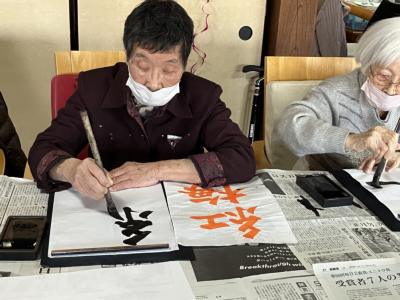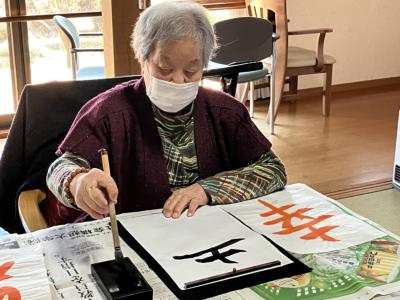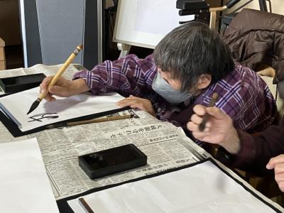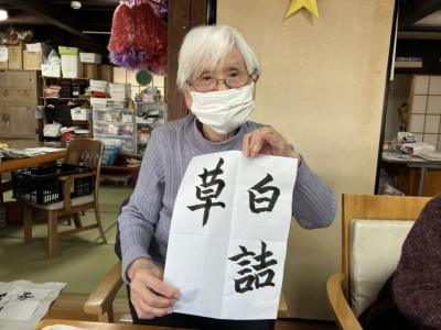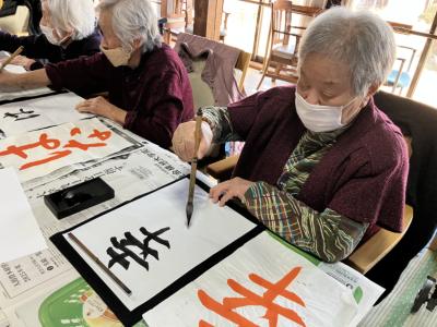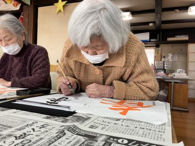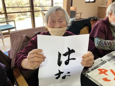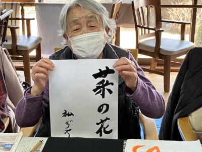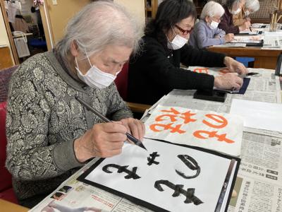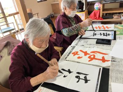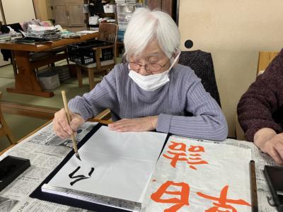 中には見本を見ずに、自分の考えた字を書き始める母もいます