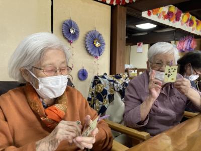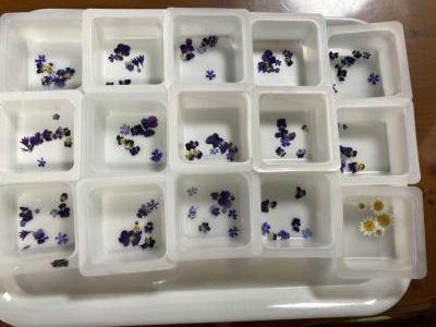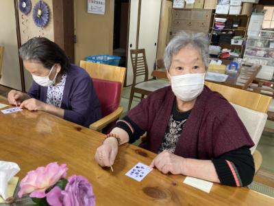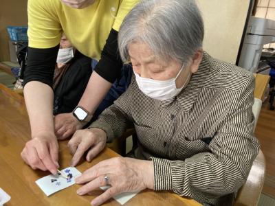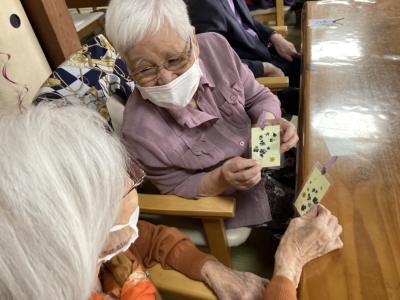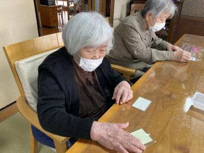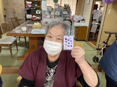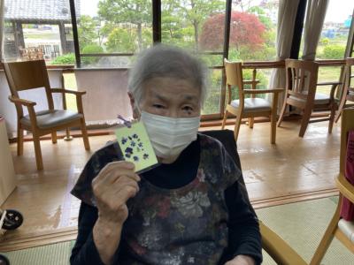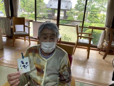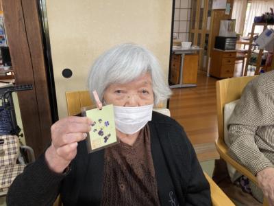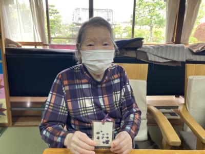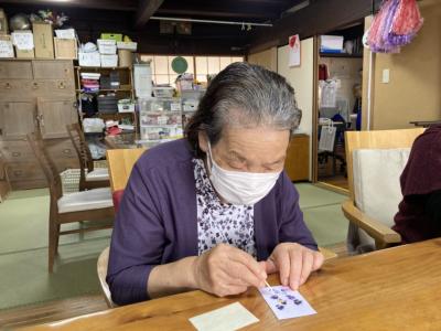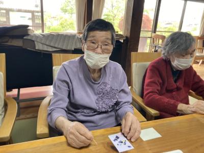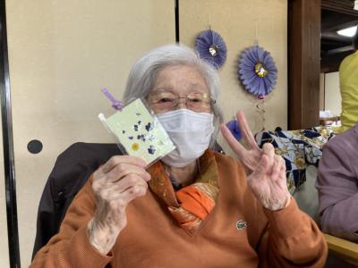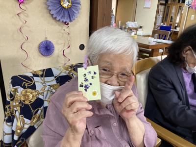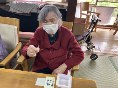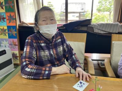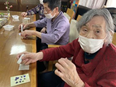 今日のレクリエーションは可愛らしい押し花を使った栞作り
