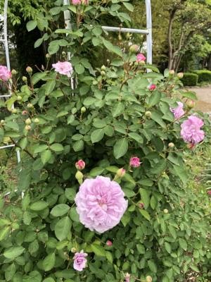 蕾を沢山付けている薄紫色の薔薇・・・・