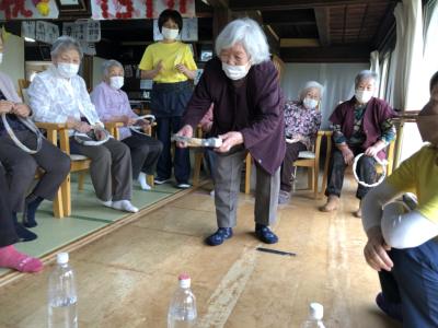 慎重派の父も狙いを定め 集中して輪っかを投げていました