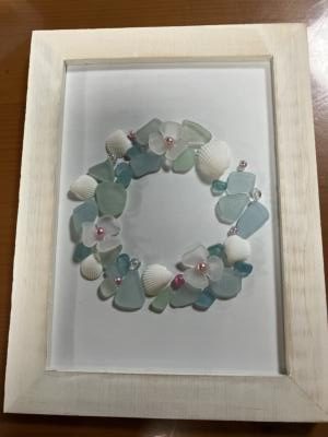 こんな感じで、シーグラスや貝殻、ビーズを使った