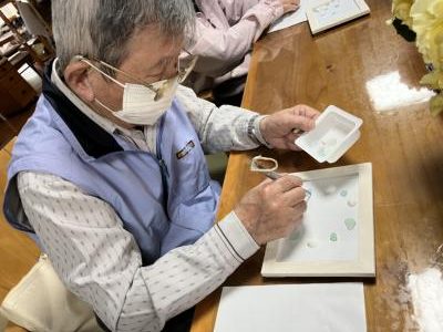 いよいよシーグラスや貝殻をどう配置していくか・・・