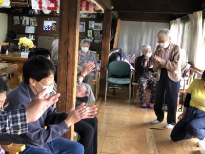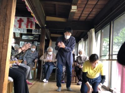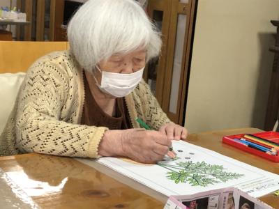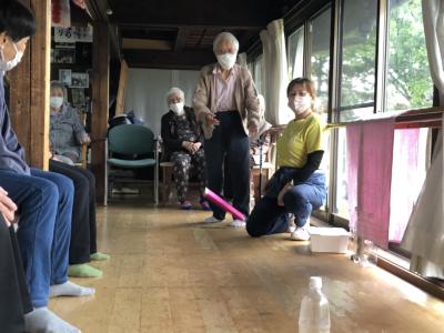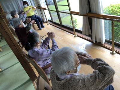 お庭の景色を眺めながらの体操は気持ちがいいですね