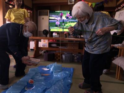 真剣に釣られる母!仲良し母がアドバイスしてくれています