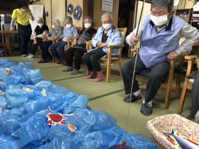 父は、釣れた魚をカゴに入れるお手伝いをしてくれています
