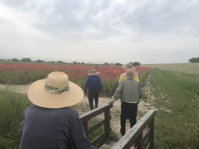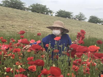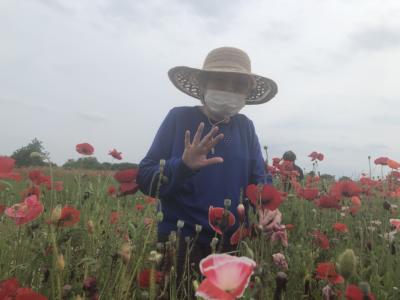 お花大好きな皆さんはたくさんのポピーの花に囲まれて