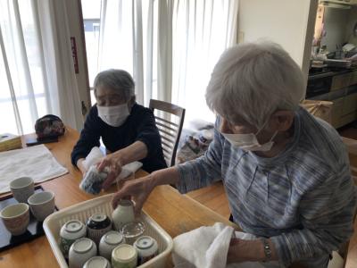 昼食後は食器を拭くお手伝いをしてくれる母です