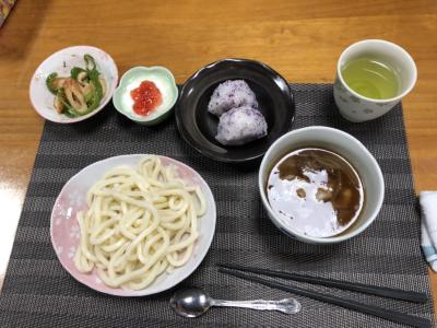 茄子と豚肉のつけ汁うどんにしましたよ~