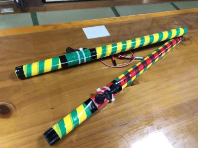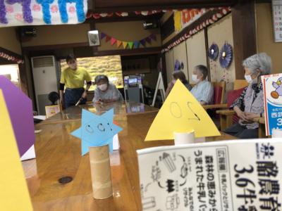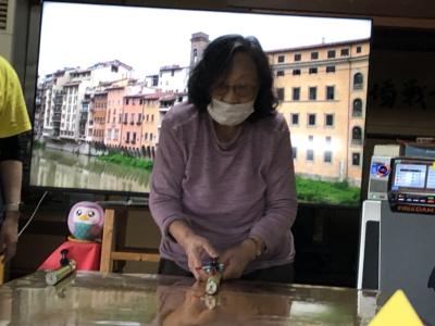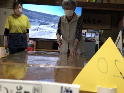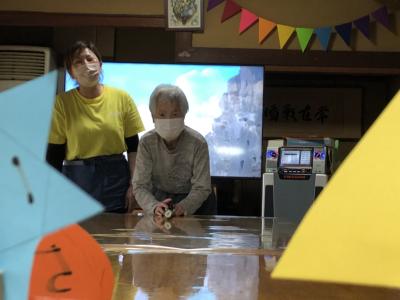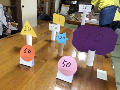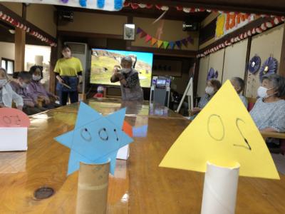 狙いが上にいきすぎてしまって、的が倒れなかった母
