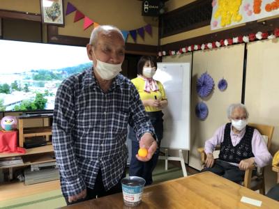 本日も皆さんで大盛り上がりのピンポン玉入れ大会でした