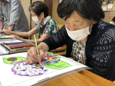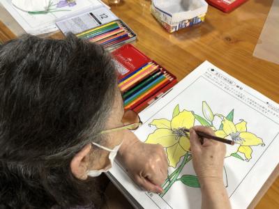 塗り絵や計算問題にチャレンジ中です