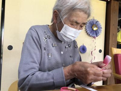 輪飾りに夢中になり、あっという間にレク終了の時間です