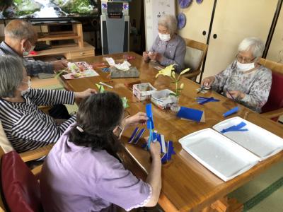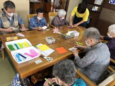 みんなで協力をして、折り紙の短冊をつくっていきました