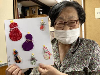 先日お休みされた母達、六瓢箪の押絵が完成しました