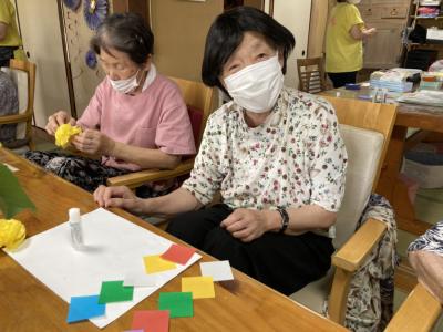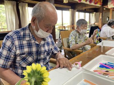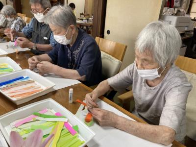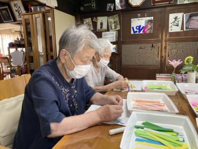 七夕飾りを作る事で指先の訓練や集中力アップ、コミュニュ